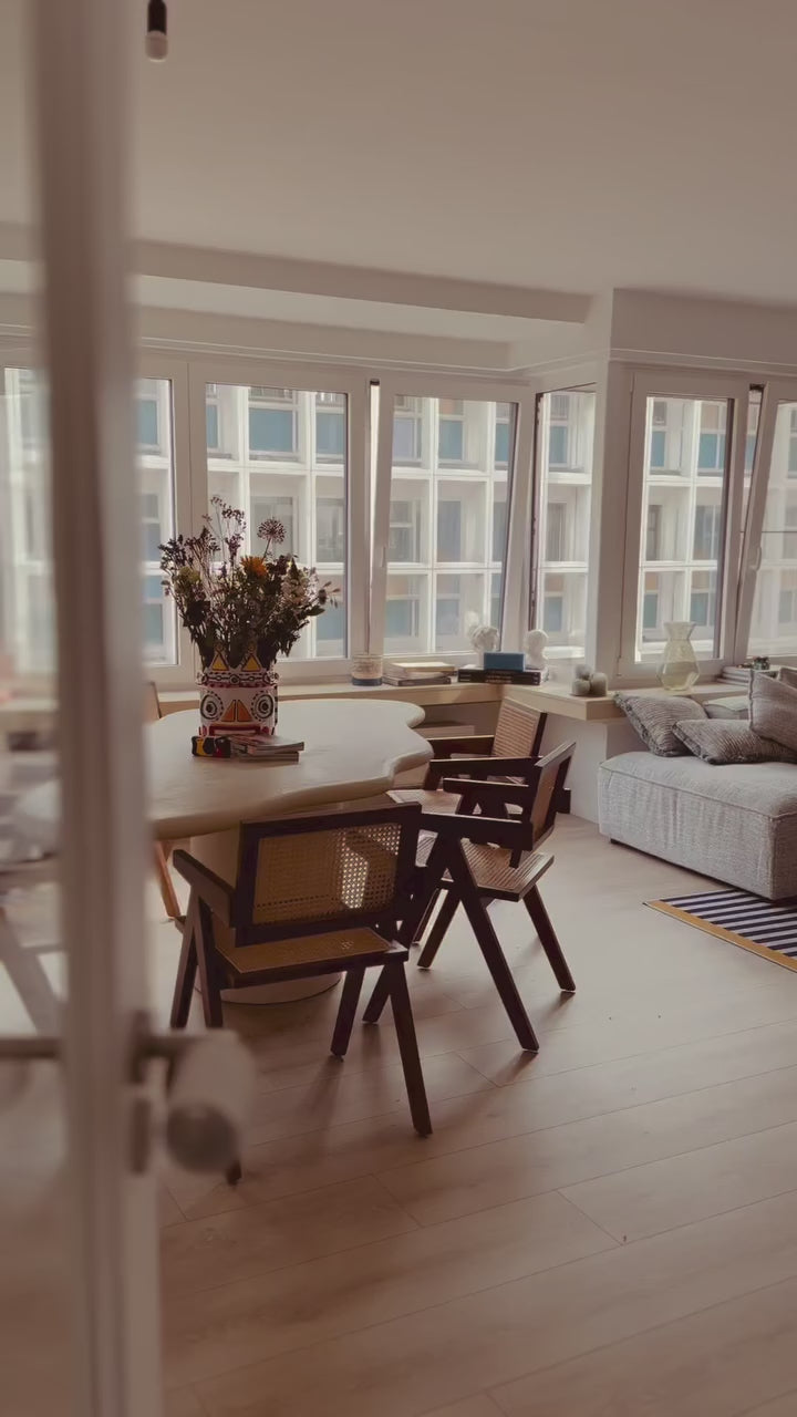 Tamamen el yapımı microcement malzemesi, pürüzsüz ve doğal bir doku sağlar. Yemek odanızda veya toplantı alanınızda benzersiz ve sanatsal bir odak noktası oluşturur.
