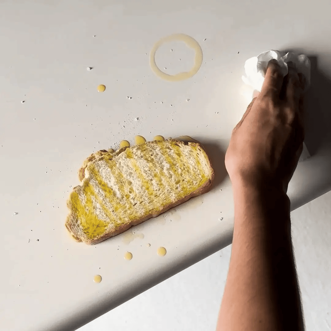 Hayır. Ürünlerimizin yüzeyi, mikro çimento karışımının üzerine uygulanan özel yüksek performanslı koruyucu ve cilalarla kaplanmıştır. Bu katman, ürünlerinizi günlük kullanımda oluşabilecek lekelere, suya ve çizilmelere karşı maksimum düzeyde dirençli hale getirir. Normal bir nemli bezle kolayca temizlenebilir.